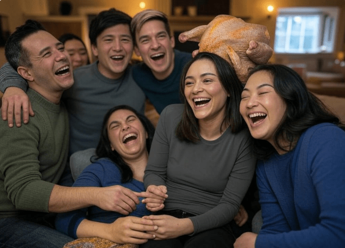 This scene reminds us that laughter is powerful. Whether it’s a turkey on your head or a funny story with friends, these moments bring people closer.